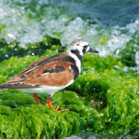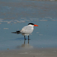-Charadrius melodus-Very pale above; the color of dry sand. Orange legs and bill in breeding plumage with a black tip...